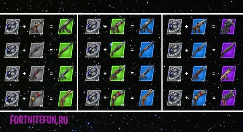 И в данной статье мы обсудим все возможные формулы для крафта оружия.