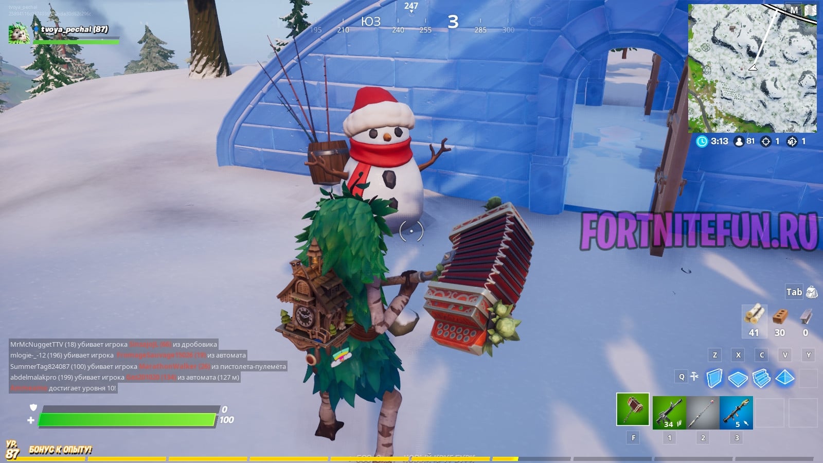 Прячьтесь внутри скрытного снеговика в разных матчах — это очередное испытание серии заданий «Зимний фестиваль» фортнайт. Чтобы его завершить и получить заслуженную награду в виде прекраснейшей восточной эмоции, следуйте нашим советам и не забывайте, что пусть снеговики и не живые, безжалостно крушить их — последнее дело!