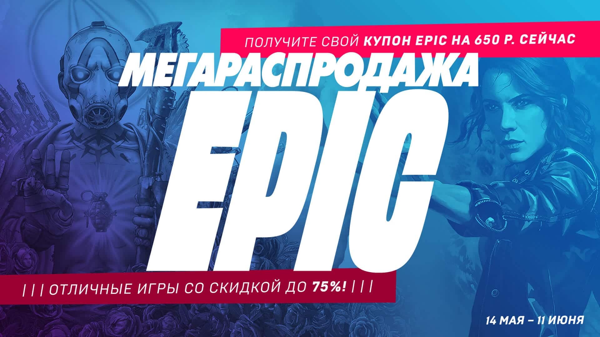 14 мая в магазине Epic Games Store началась «Мегараспродажа EPIC», которая продлится до 11 июня. Во время распродажи у Вас будет возможность приобрести интересующие Вас игры со скидкой до 75% и скрасить время ожидания 13 сезона фортнайт.
