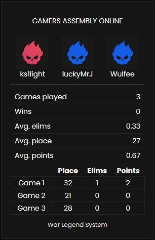 На 32 месте располагается трио: ks1light, Mr. J, Wulfee. Они набрали всего 3 поинта за весь турнир, но они сыграли только 3 игры из 5 возможных. Скорее всего они просто решили не доигрывать турнир из-за невезения в предыдущих.