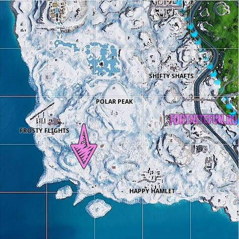 Приземляйтесь в указанную точку на карте и спускайтесь на домик в огромной дыре. Прямо на крыше Вы найдете звезду 5 недели: