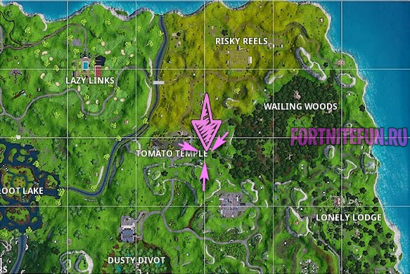 Ищите между каменным великаном, царственным помидором и деревом в круге