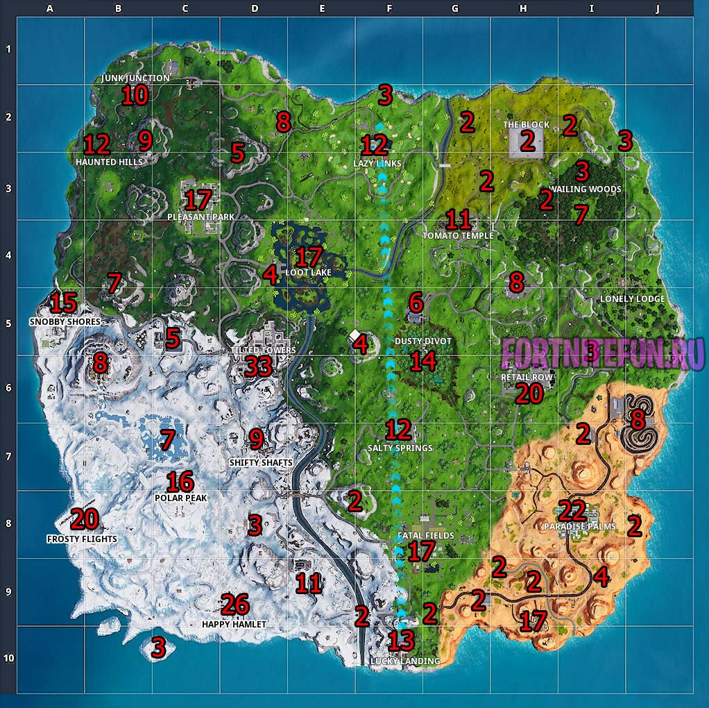 5 неделя 7 сезона началась! Эти челленджи, очевидно, не обошлись без серии заданий «станцуйте на» и «приземлитесь в». Все челленджи, указанные ниже, желательно проходить в режимах 50 на 50 или 32 на 32 (Командная потасовка, Взрывчатка, Тотальный Танцпол — они регулярно меняются). Наслаждайтесь прохождением вместе с нами и нашими чит-картами!