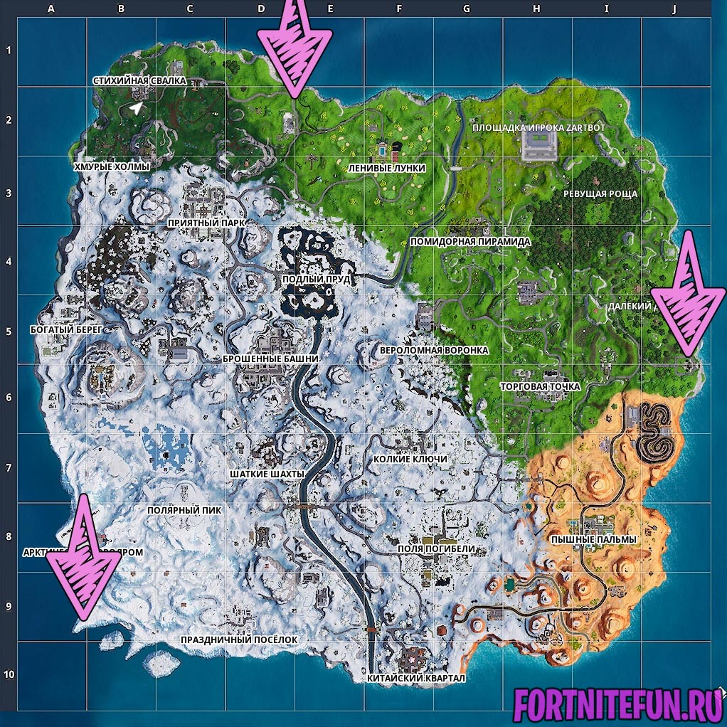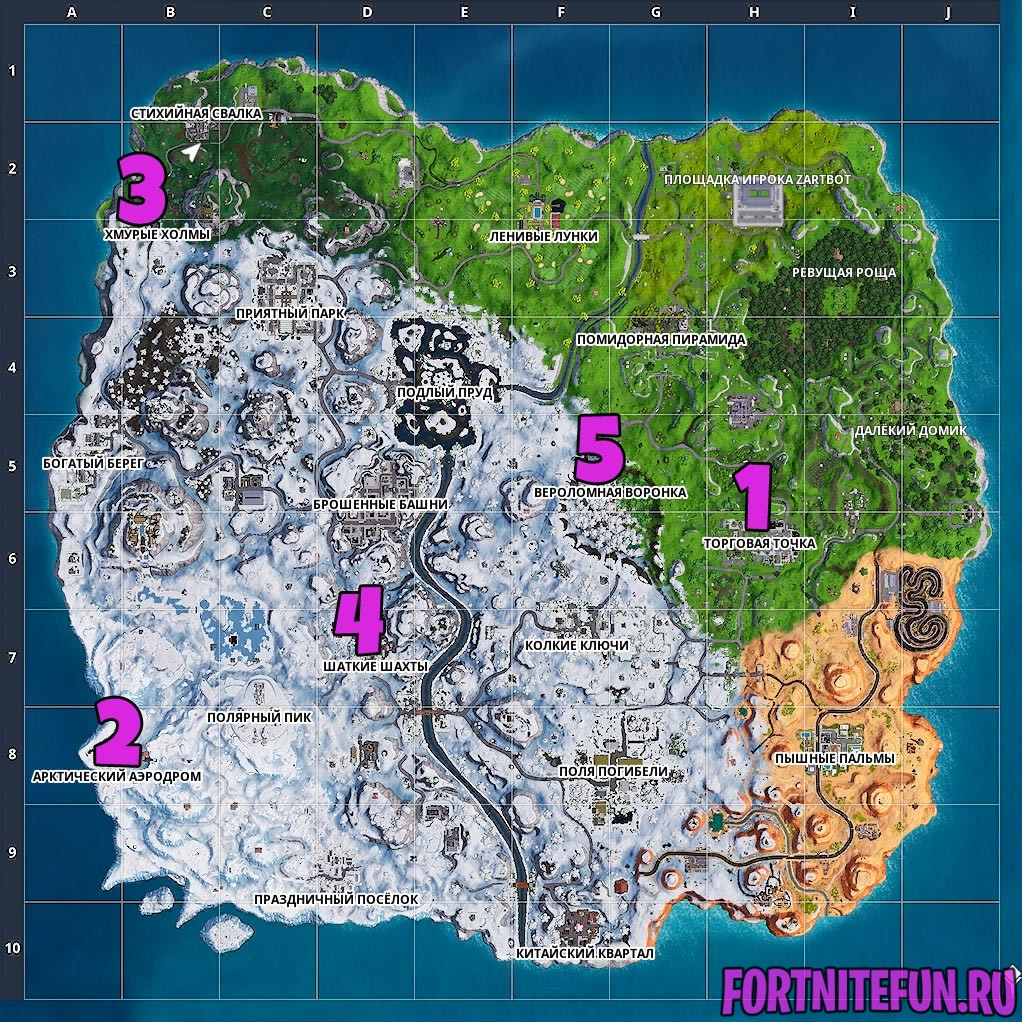 Достаточно просто приземлиться в следующих районах. Приземление, которое Вы совершаете после прыжка с батута — засчитывается.