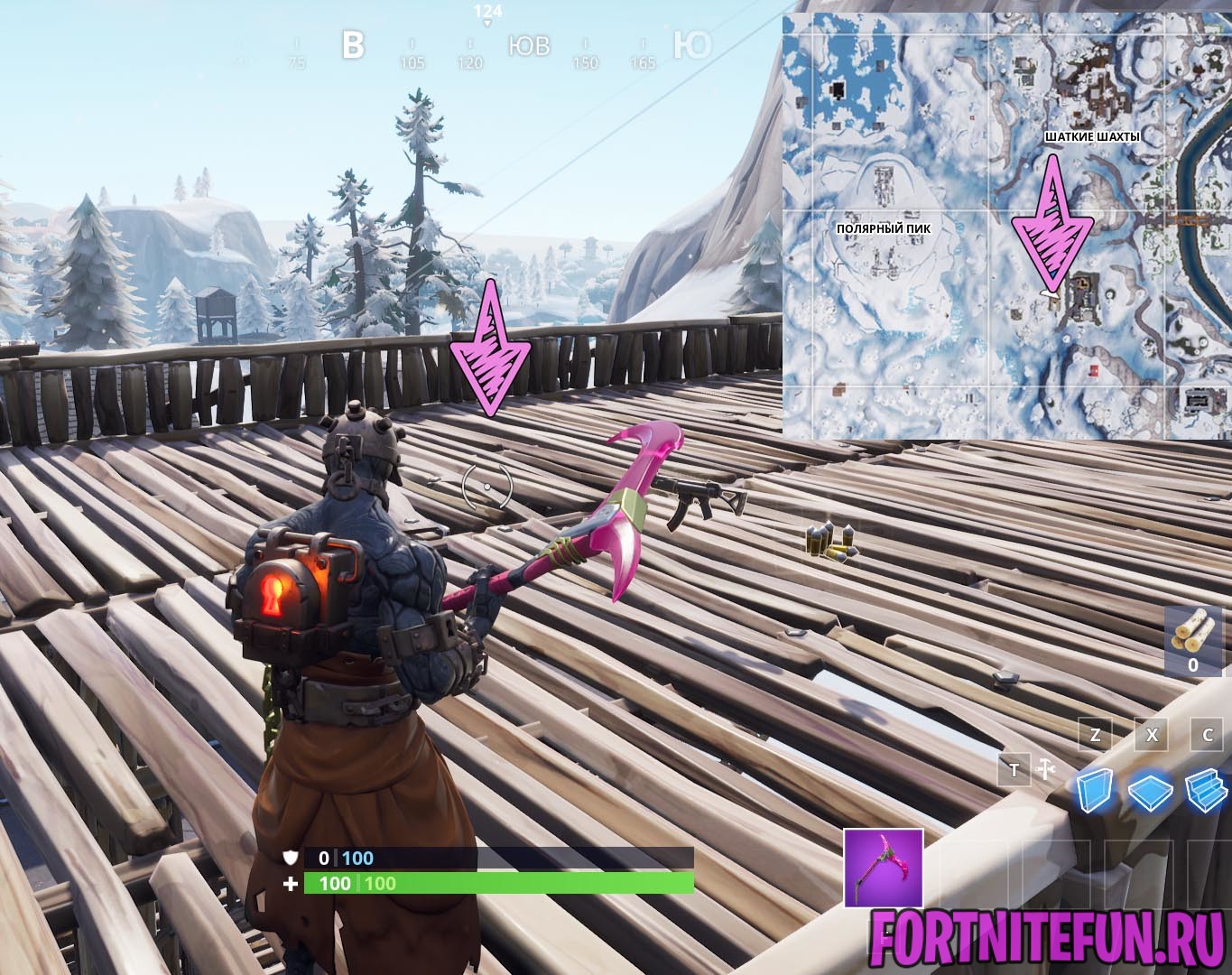 Звезда 9 недели находится под огромными деревянными санками. Они располагаются в локации под шаткими шахтами и правее полярного пика. Точное расположение санок смотрите на скриншоте: