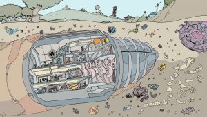 Тут я подумала, что пригодится рука, утопленная в океане, но нет — роботу сделали новые части. Примечательно, что мастерская Парадигмы находилась на Ледяной Луне. Также, если приглядеться, на территории Луны есть ракета Экспериментатора.