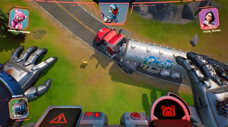 И вот час X пробил: начался ивент. Парадигма управляет мишкой, а мы сидим в кабине, наблюдаем и помогаем с отстрелом ОП. В какой-то момент ракеты выводят робота из строя, и появляется Банан. Он привез нам нектар, и мы вылечились. Как это вообще сработало даже не спрашивайте.