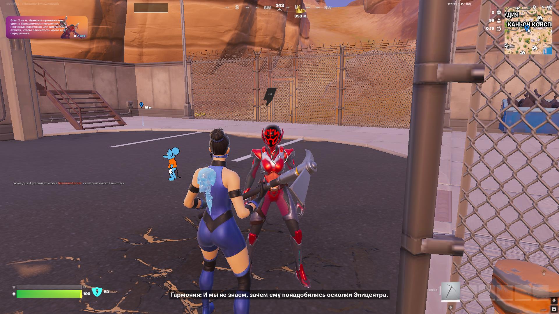 Этап 2 из 4. Нанесите противникам урон в Праздничном поселении, Песчаных переулках или Элегантных этажах, чтобы расчистить место для передатчика