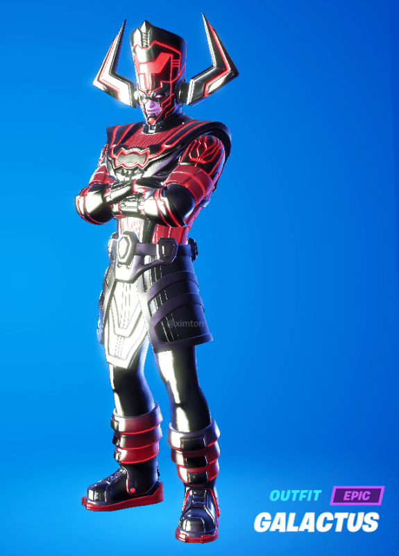 Пока неясно, насколько этот скин будет похож на прибывшего Галактуса, но выглядит он довольно внушительно, хоть и совсем маленький. Он одет в сверкающе-черно-красную броню с злодейскими узорами, массивные ботинки и просто гигантский шлем.