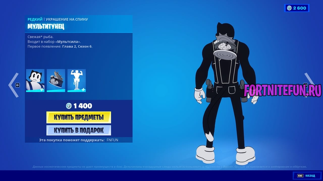 Мяускул с рисовкой 20-30-х годов Диснея, имея незамысловатое, но говорящее само за себя название — «Мультмяускул», уже попал в магазин предметов фортнайт.