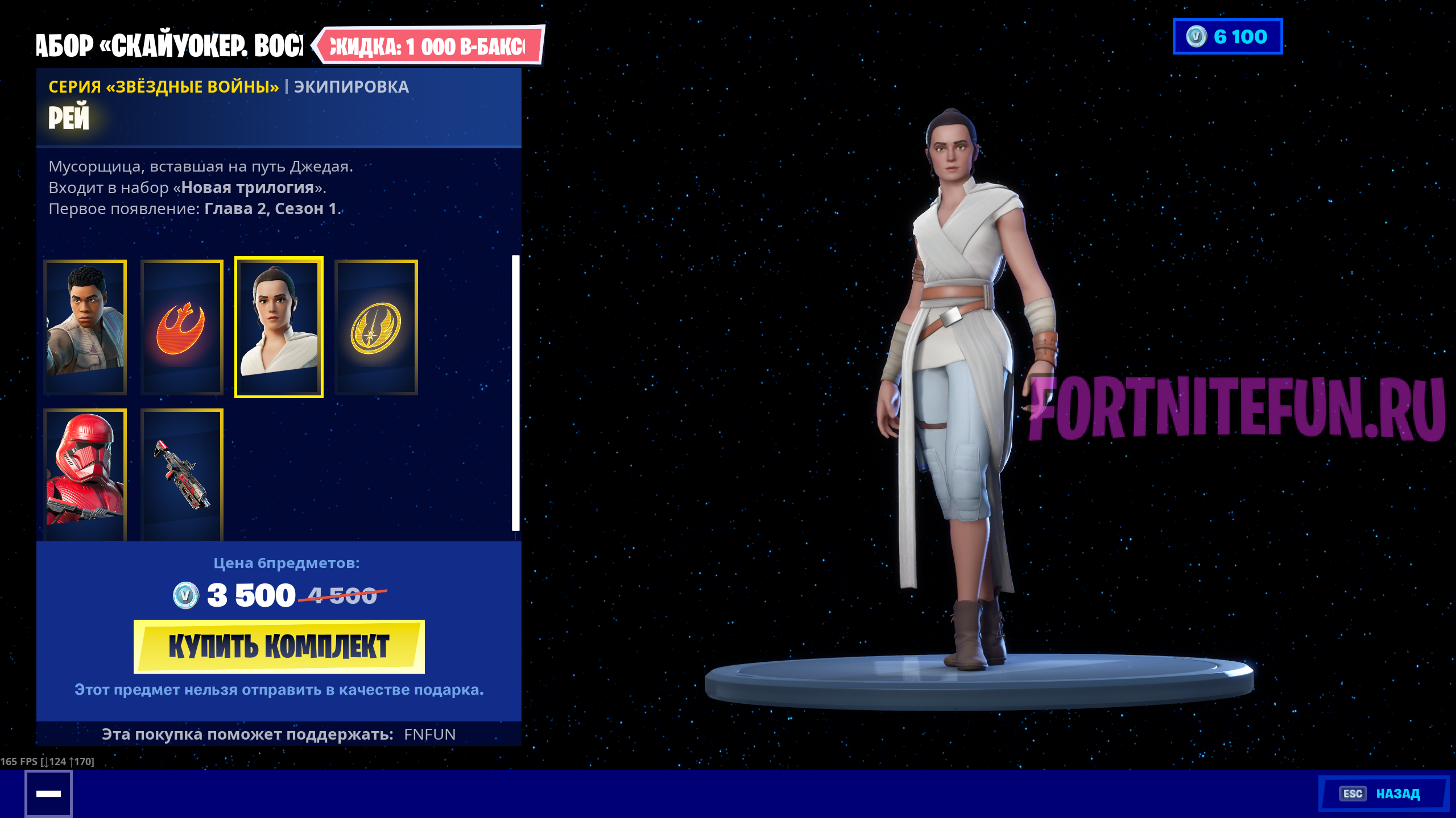 Рей, главная героиня 7,8,9 эпизодов Звездный войн, появилась в магазине Фортнайт неслучайно, ведь она имеет одну из главных ролей в новом фильме. Если забыли, то Рей обучалась у Люка Скайокера и имеет влечение к силе!