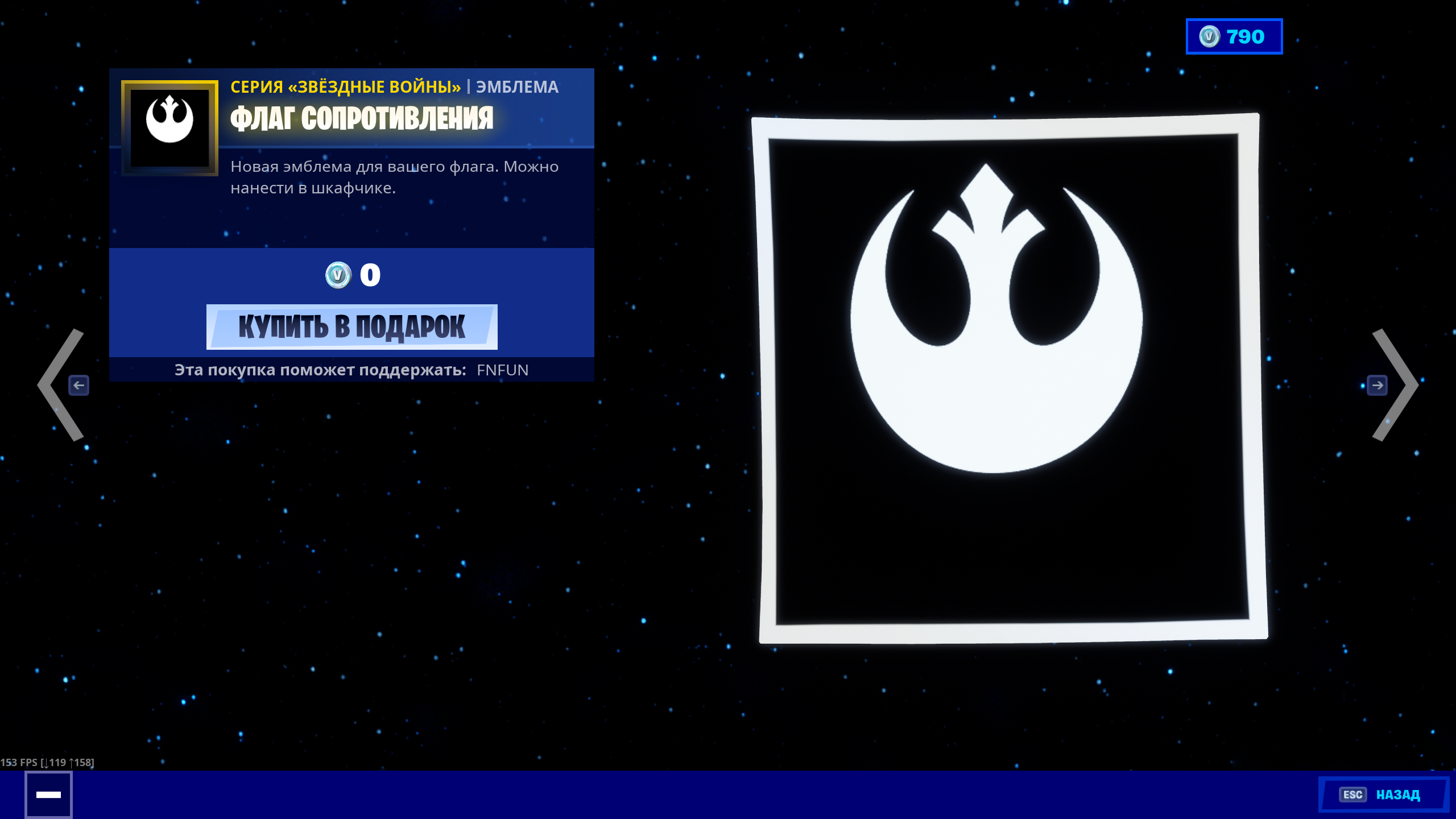 Также не забывайте, что Вы можете порадовать своих друзей эмблемами «Флаг первого ордена» и «Флаг сопротивления». Чтобы это сделать, просто нажмите купить в подарок и отправьте товарищу! К сожалению, отправить подарок самому себе нельзя, поэтому попросите друга!