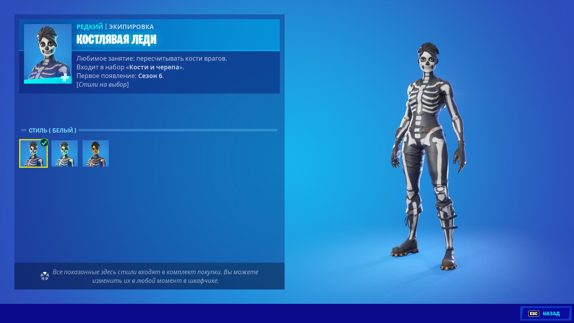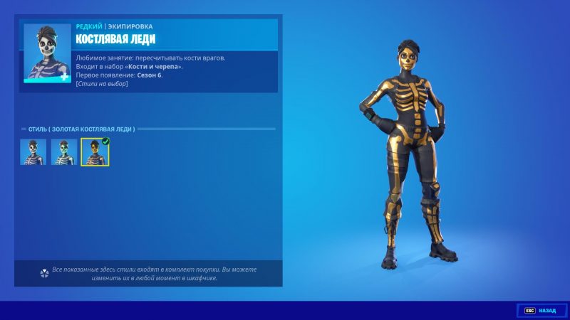 Скин «Костлявая леди» можно приобрести во внутриигровом магазине за 1200 V-bucks.