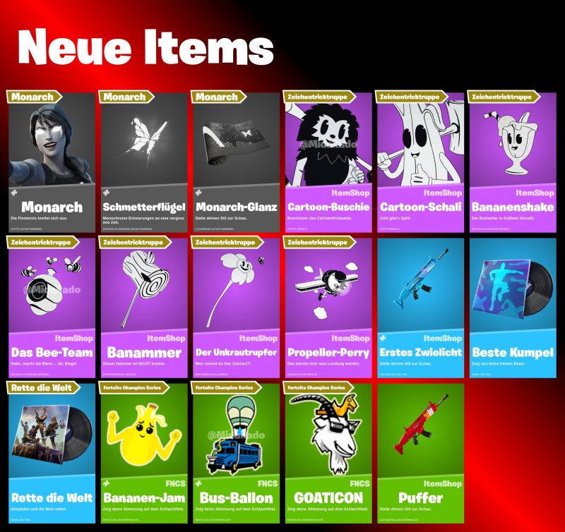 Ну и как всегда выкладываем общую картинку со всеми обновлениями и с тем, что скоро появится в магазине фортнайт: