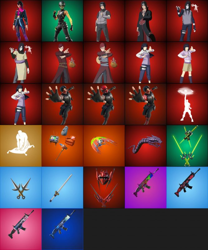 Также в файлах игры обнаружены скины будущей коллаборации с Наруто. На первый взгляд выглядят они лучше первой партии героев аниме, но все также немного странно для стиля игры в целом. У каждого героя есть свои уникальные аксессуары, например, Гаара летает на огромной песчаной тефтеле. И без бесплатных наград не обошлось, как и в прошлый раз игрокам предстоит реально побороться за эмодзи, обертку и дельтаплан из вселенной Наруто.
