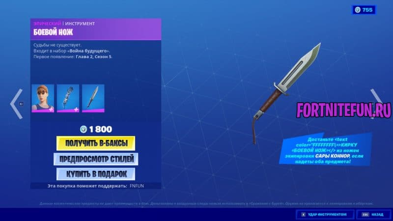 Если покупать версию за 2800 В-баксов, включающую и Терминатора, можно отхватить несколько кирок, рюкзак и эмоцию.