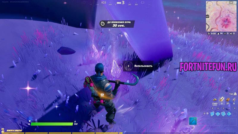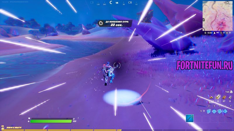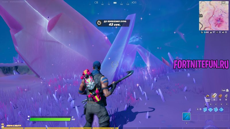 Чтобы выполнить данное легендарное испытание, вам необходимо приземлиться в центральную пустынную локацию — Эпицентр и разбивать там фиолетовые камни. То, что получится от этих камней, и нужно использовать (выбрать в инвентаре камень, нажать на него левой кнопкой мыши и затем дважды нажимать на пробел). Так вы используете способность эпицентра «Рывок» и сможете ударить противника (можно нанести урон оружием).