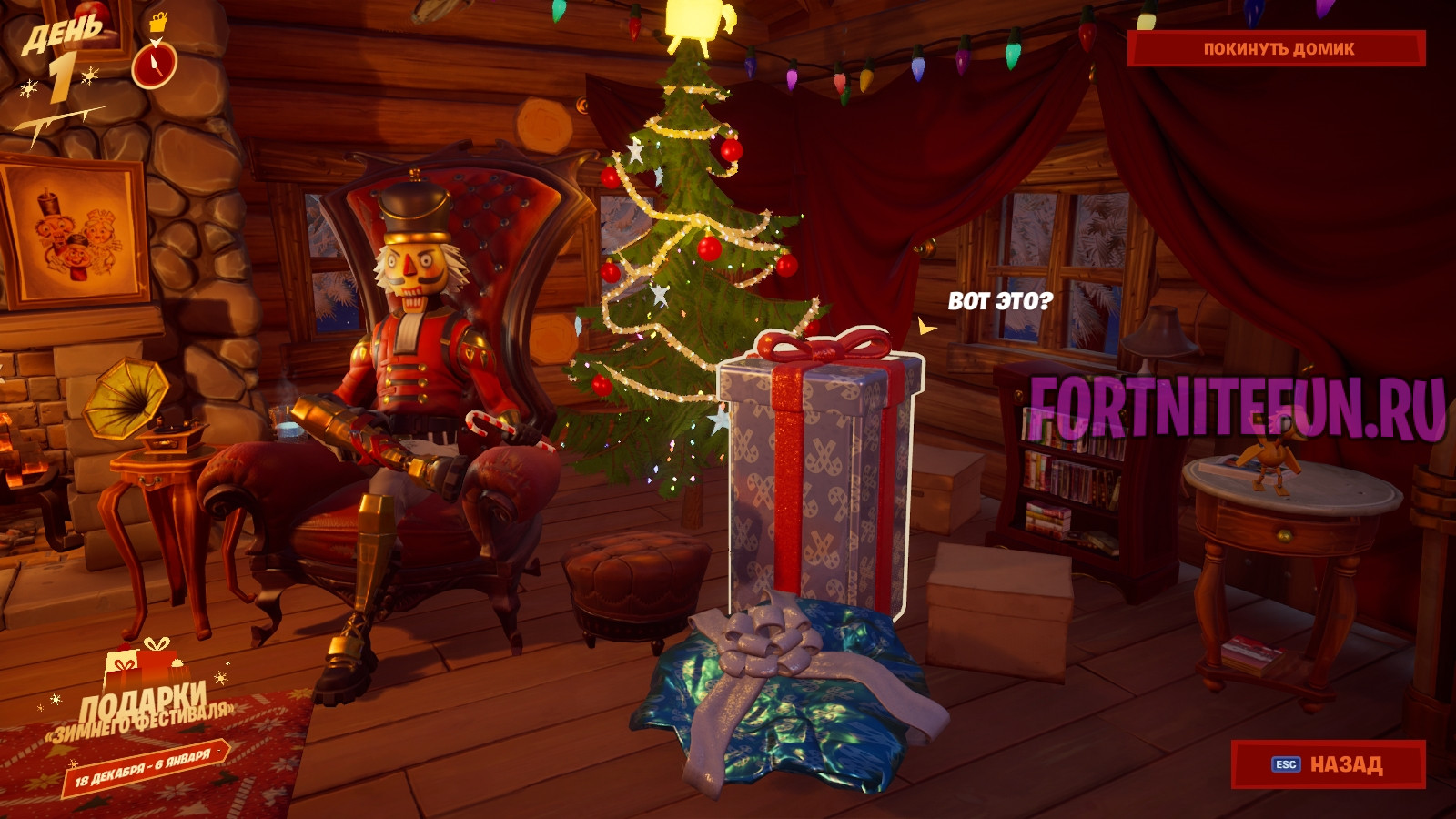 Чтобы обзавестись этими наградами, Вы должны заходить в фортнайт раз в сутки и открывать подарки, которые находятся в домике зимнего фестиваля. Как в него попасть показано в видео. Просто нажимайте на снежинку, рядом с меню игры.