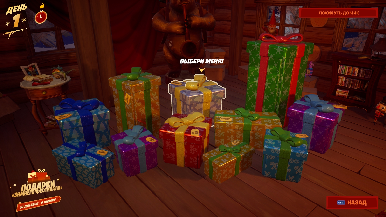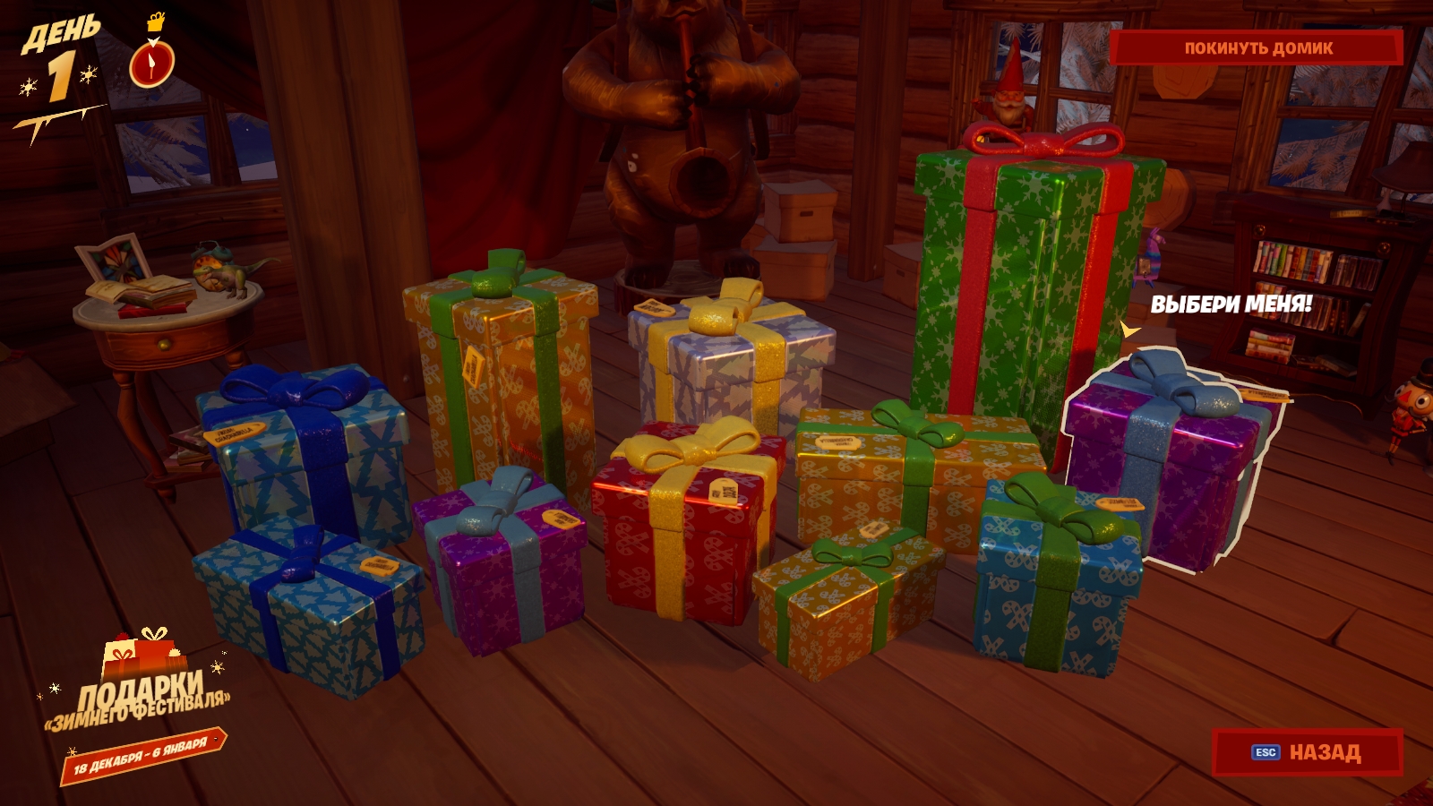 Зимний фестиваль наступил сегодня и принес нам много неожиданных бесплатных наград. Подарков действительно огромное количество, целых 14, и каждый можно получить абсолютно бесплатно, просто посещая фортнайт каждый день. Внутри, как заявлено эпик геймс, две экипировки, два дельтаплана, две кирки, две обёртки, одна эмоция и «не только».