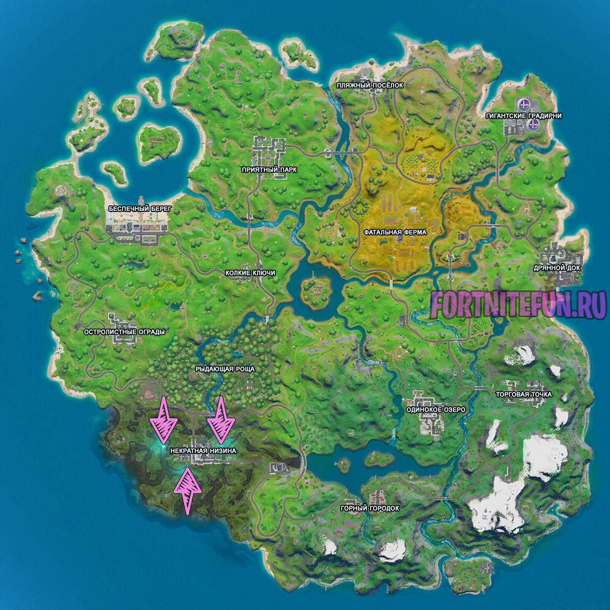Одна из самых старых локаций фортнайт снова привлекает наше внимание. На этот раз нам необходимо приземлиться в приятном парке и забить мяч в ворота. Мяч, в лучших традициях футбола, находится в центре поля. Можно не ждать свистка, а сразу рвануть к вражеским воротам, чтобы забить победный гол. Хотя… Какие ворота вражеские — это ещё большой вопрос.