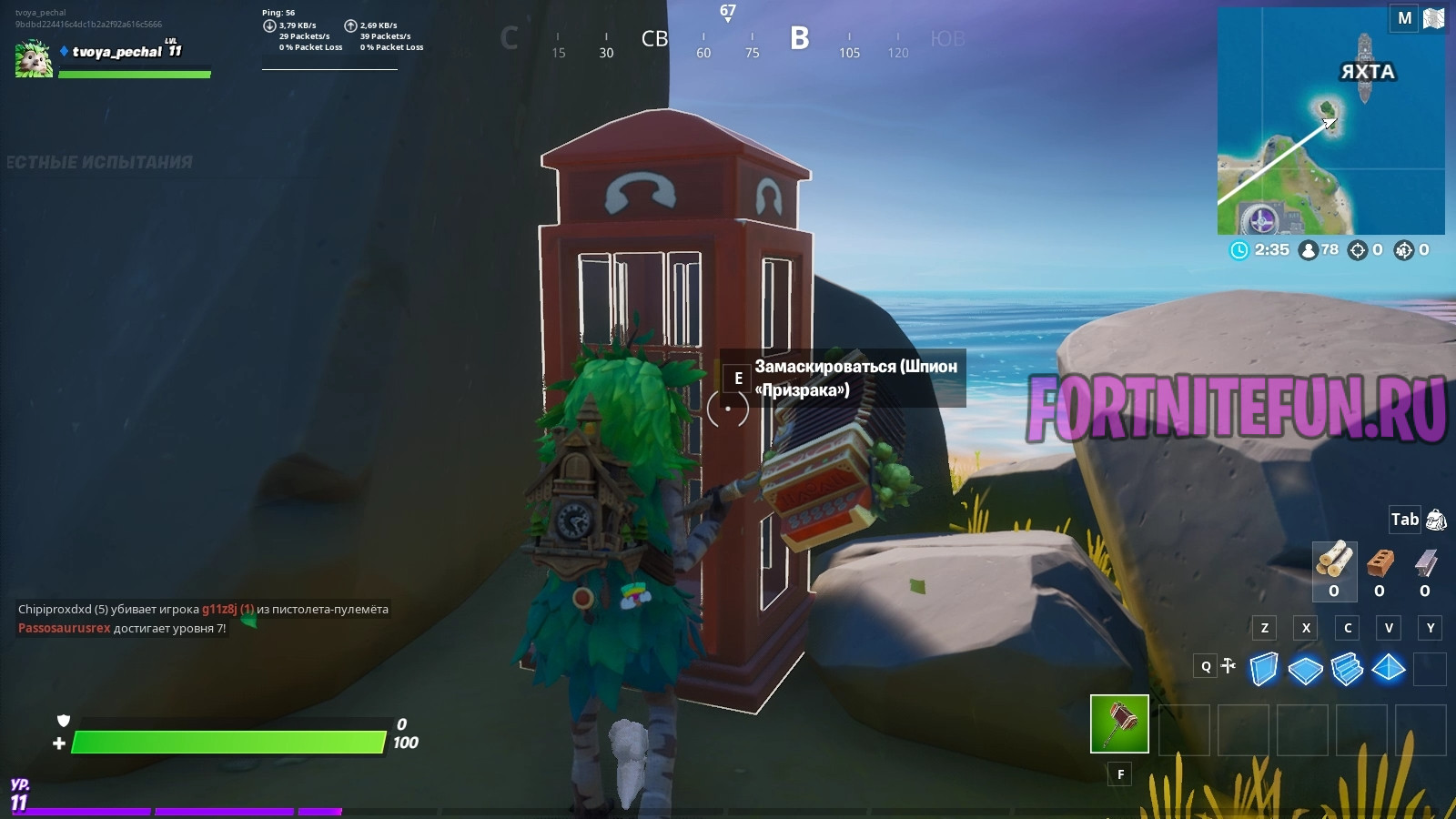 Телефонные будки, по мнению Epic Games, безумно интересны и юзать их стоит постоянно. Что же, вынуждены согласиться, ведь достижение получить хочется. 50 раз загляните в телефонную будку и вы получите достижение. На момент записи видео карты со всеми будками ещё не сделана, но загляните позже на наш сайт и вы вероятно найдёте её.