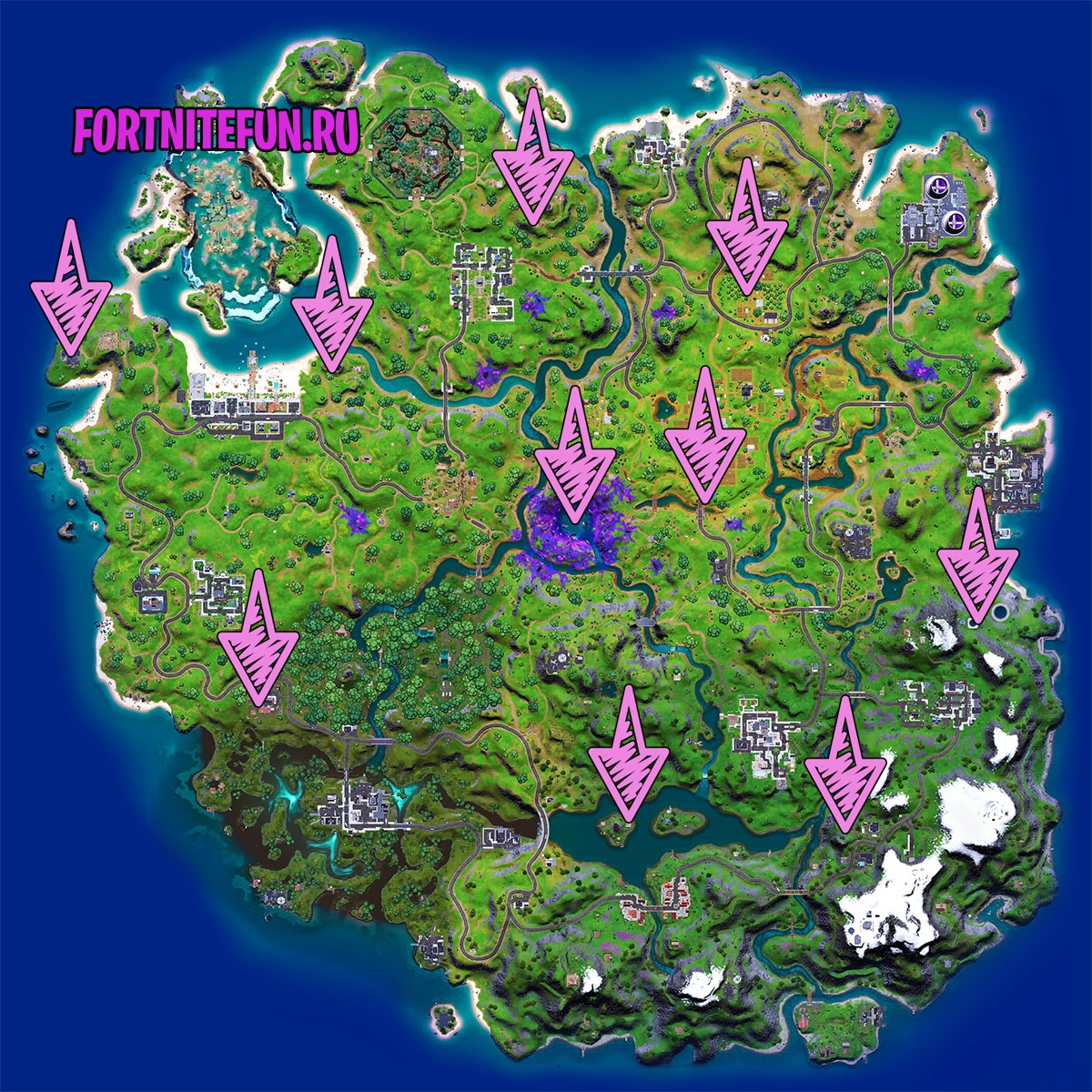 Ниже представлена карта всех артефактов для стилей Кимера 2 неделя в фортнайт: