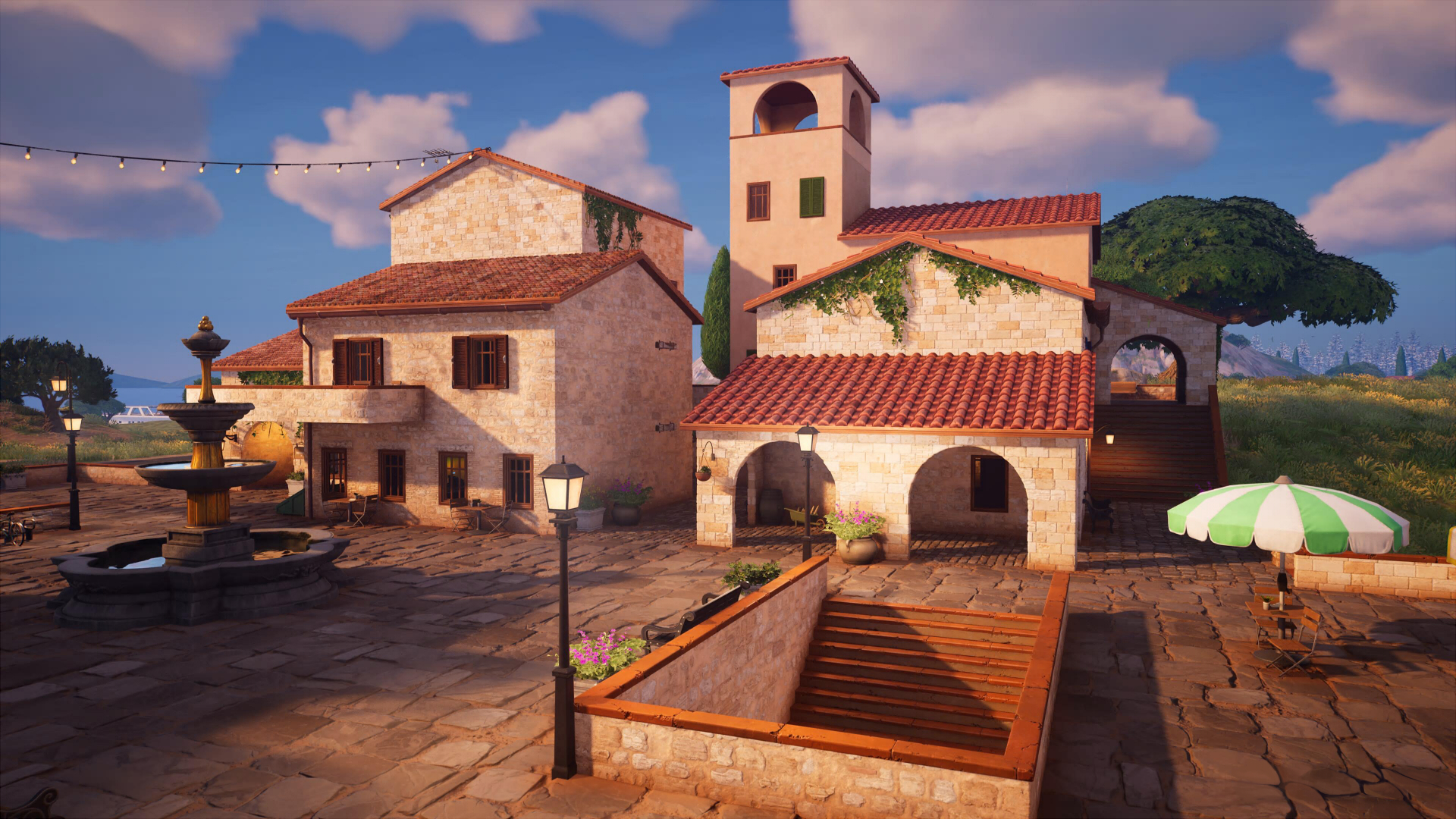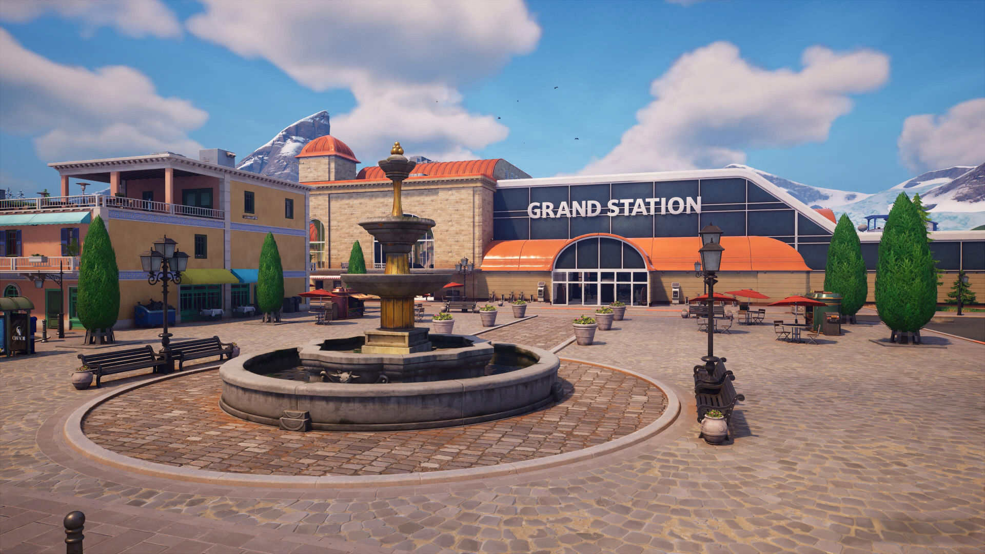 В центре площади стоит фонтан, а неподалеку можно найти фургон возрождения. Сундуков здесь много, поэтому Площадь станет отличной локацией для старта.