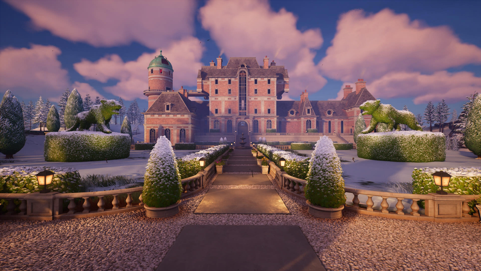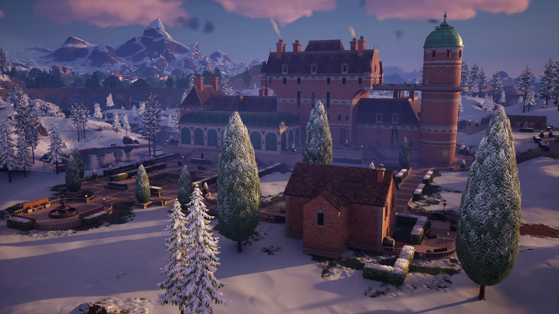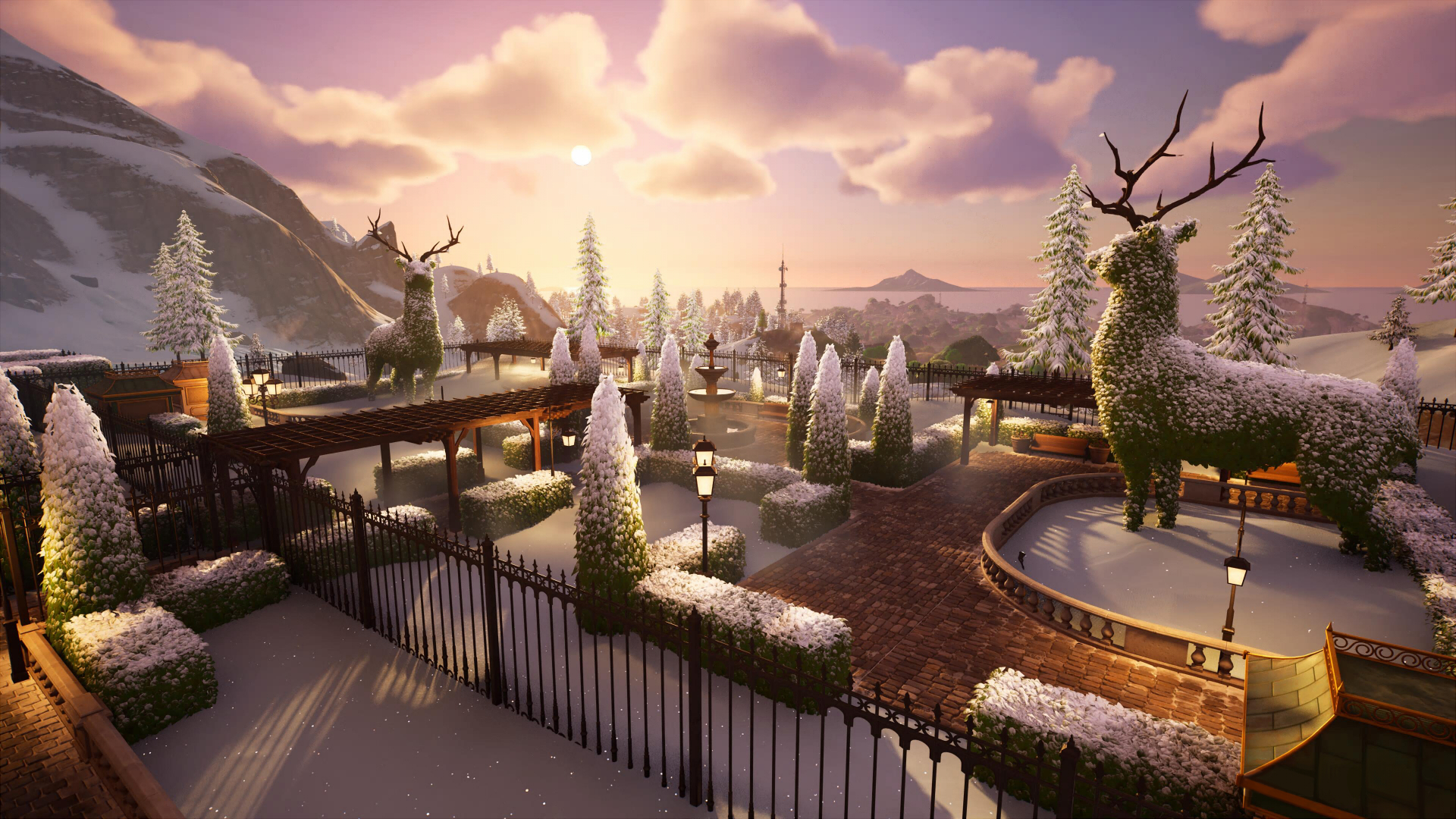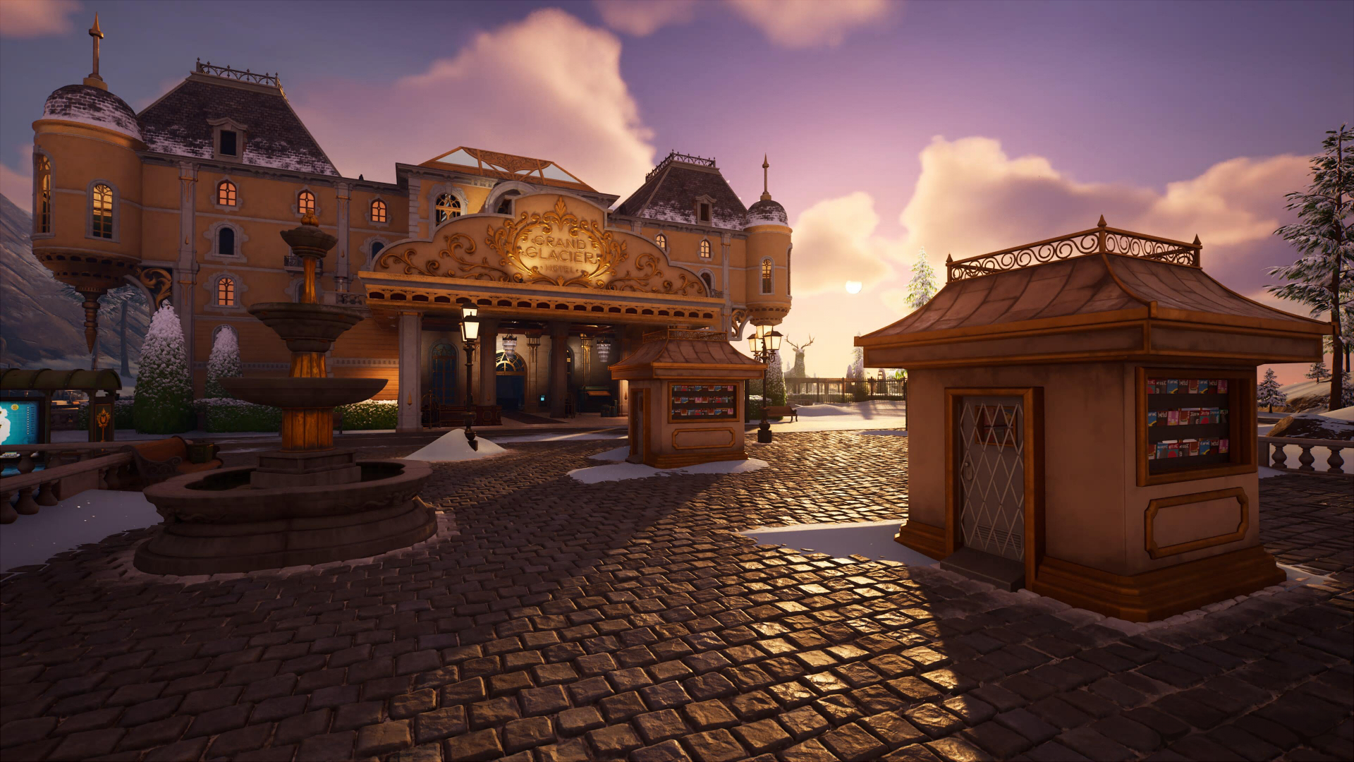 На востоке острова, в заснеженных горах, находится Обледеневший Отель – удивительное место для отдыха всей семьей. Вас ждут просторные комнаты, роскошный ресторан, олени из живой изгороди и босс отеля – Монтегю. Неподалеку от отеля можно найти фургон возрождения и хранилище.