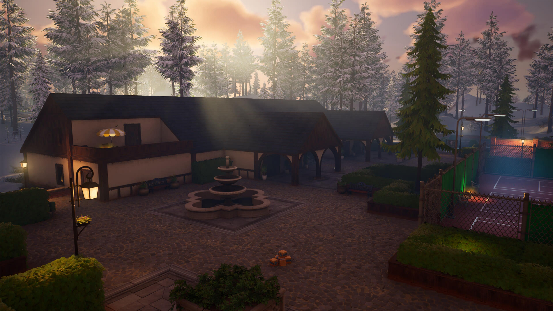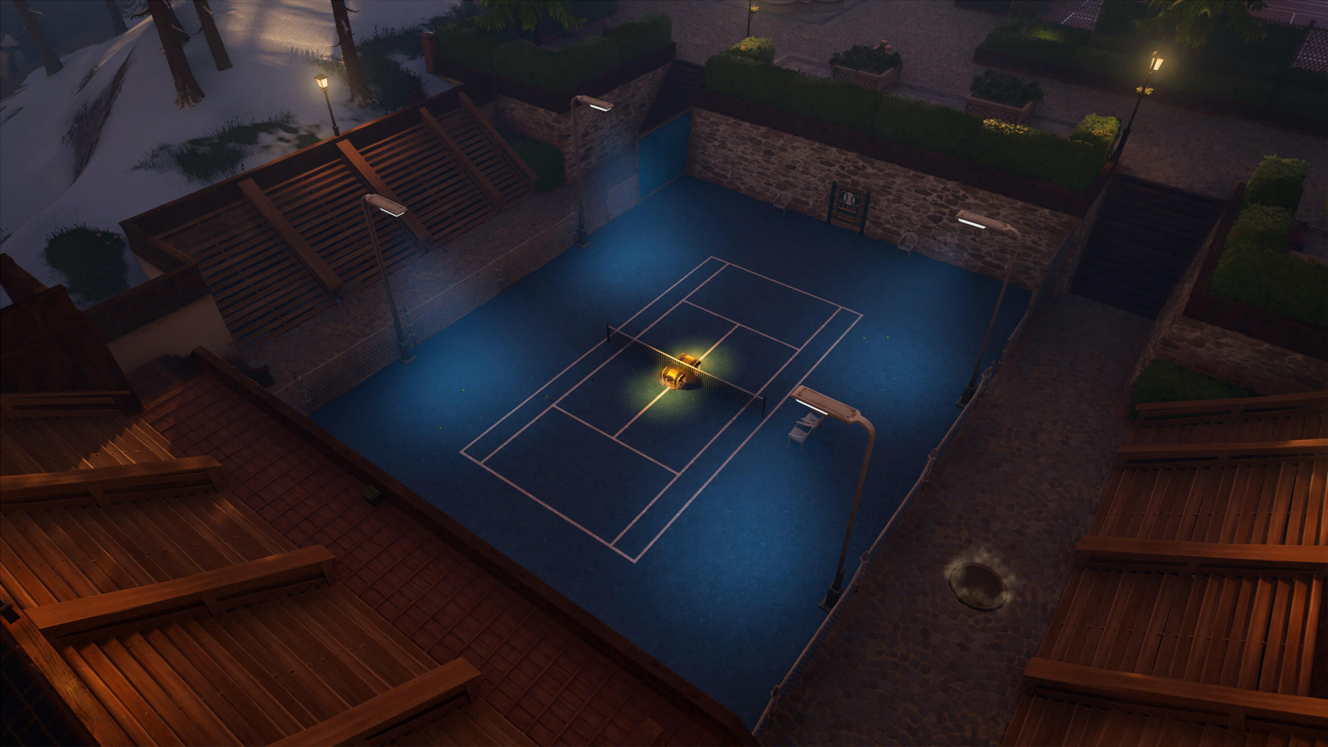 Еще одной северной локацией стал Клубный Корт – альтернатива Ленивым Лункам, только с теннисом. Довольно открытая локация с кучей площадок для игры в теннис, на которой легко заметить сундуки. Здесь есть фургон возрождения и странная фабрика по производству теннисных мячиков из плюшевых мишек.