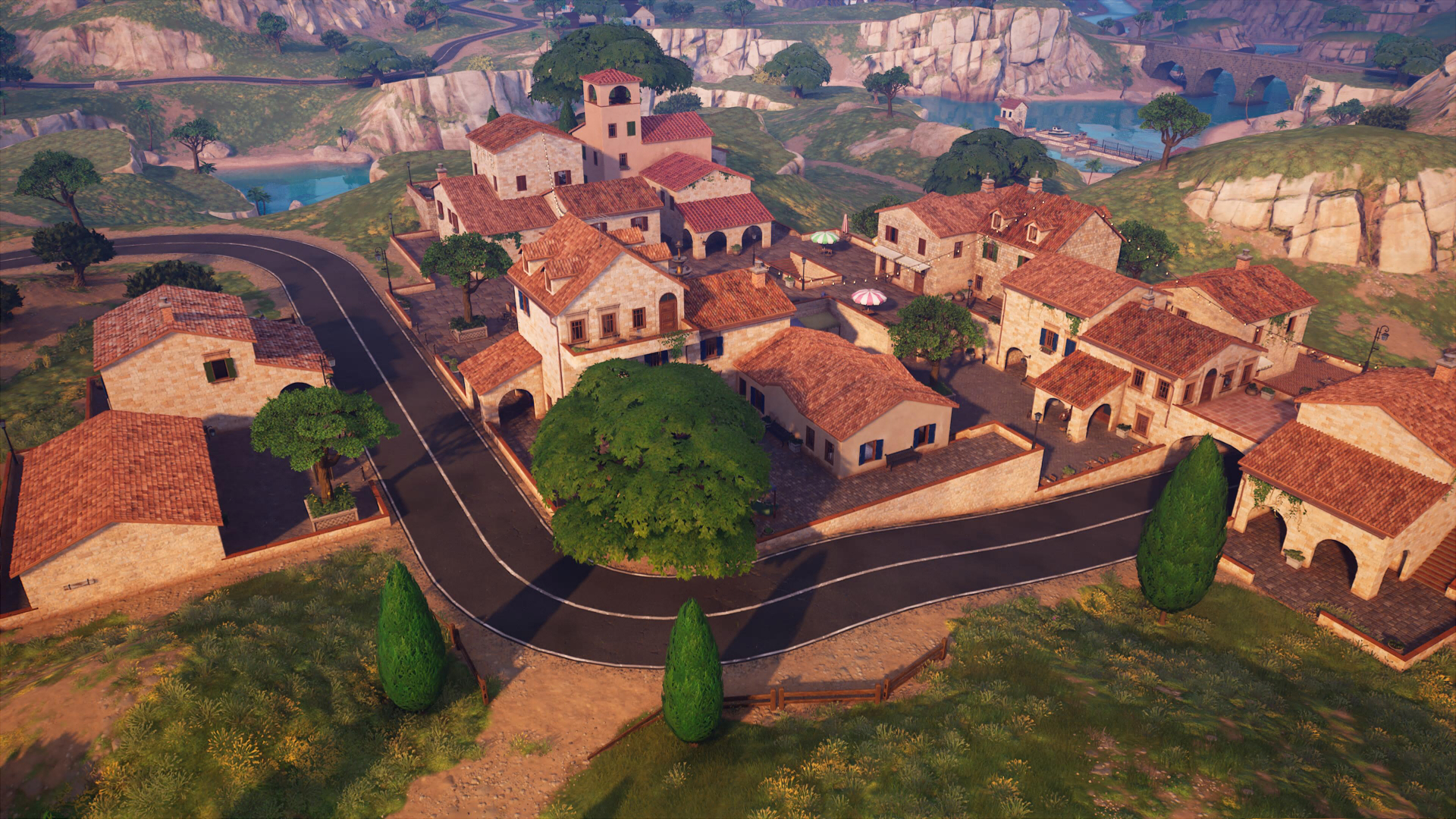 В локации можно найти неплохое количество сундуков, фургон возрождение и небольшое хранилище с парой сундуков. Неподалеку расположился прудик с маленькой рыбацкой хижиной и водопадом.