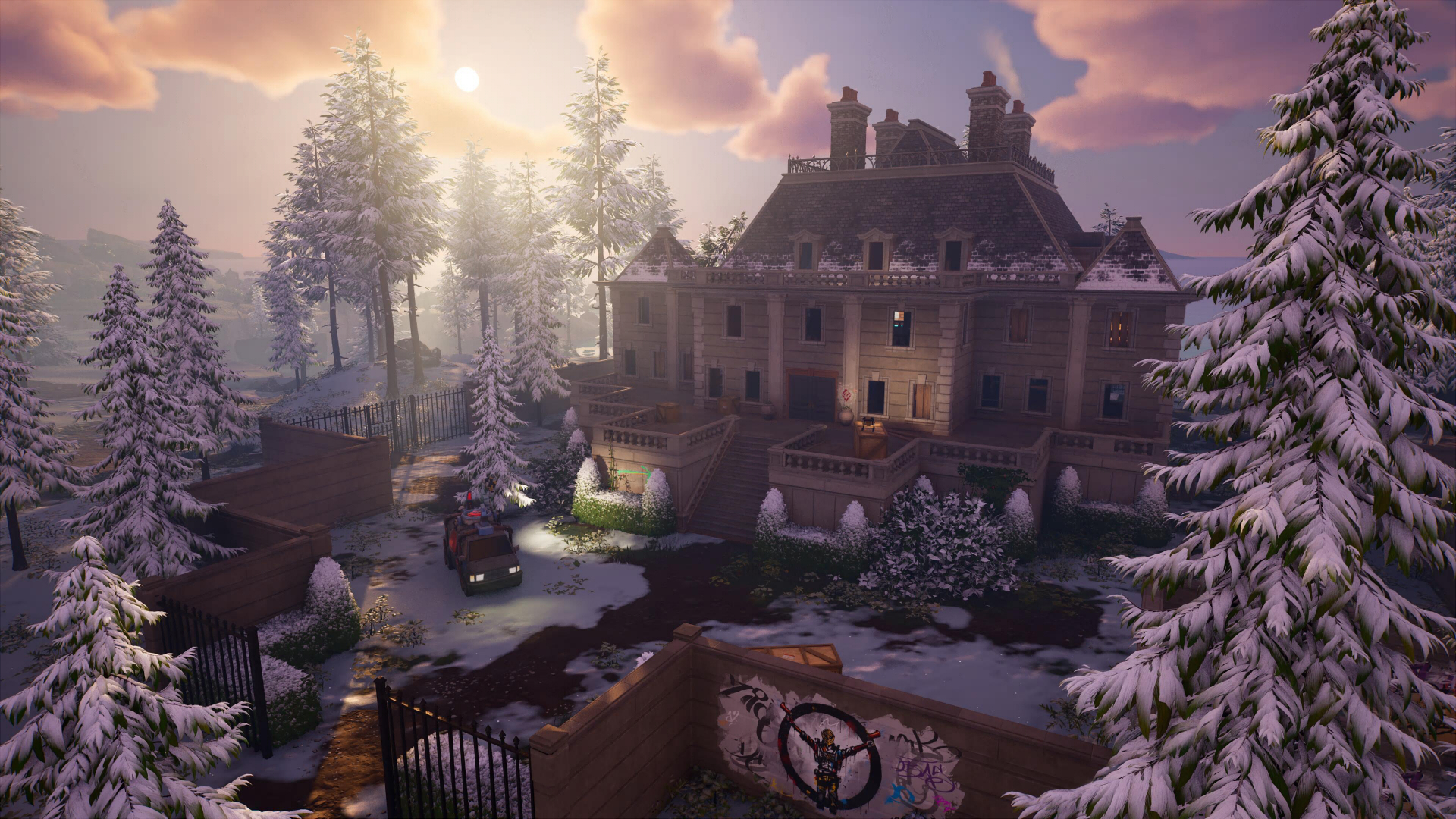 На северо-западе острова можно наткнуться на большой многоэтажный дом , огороженный забором. Сундуков здесь немного, зато есть фургон возрождения и… больше ничего. Внутри дом выглядит заброшенным, стены расписаны различными граффити, а в подвале есть небольшой домашний кинотеатр.