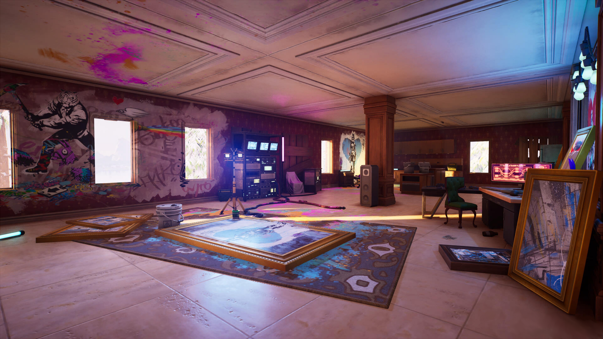 В одной из комнат над камином можно найти барельеф с золотым тигром и рояль, на чердаке расположилась бильярдная с баром. За особняком на первом этаже есть даже собственный маленький садик с деревьями и лавочками. Здесь можно обнаружить большое хранилище, фургон возрождения и приятную атмосферу.