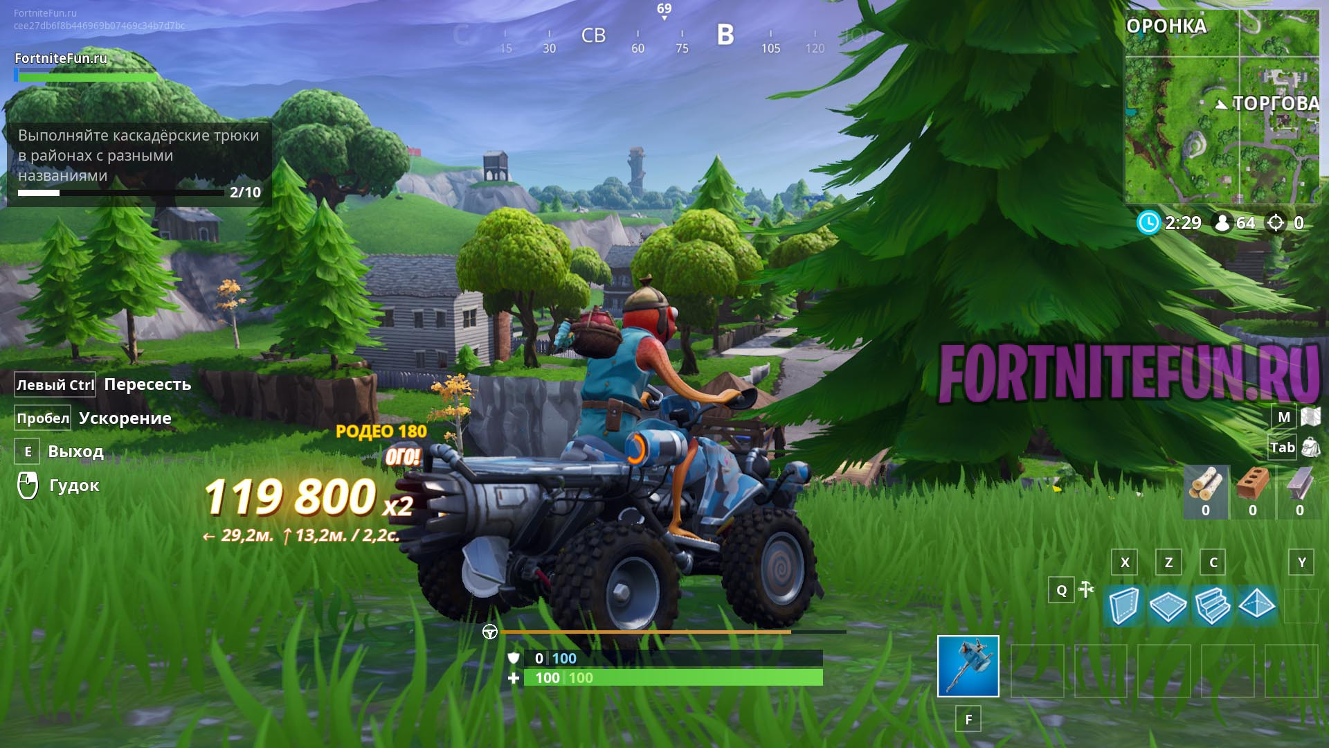10 день челленджа «14 дней фортнайт» превратит нас в каскадёров. Нам предстоит выполнять на транспорте каскадёрские трюки.