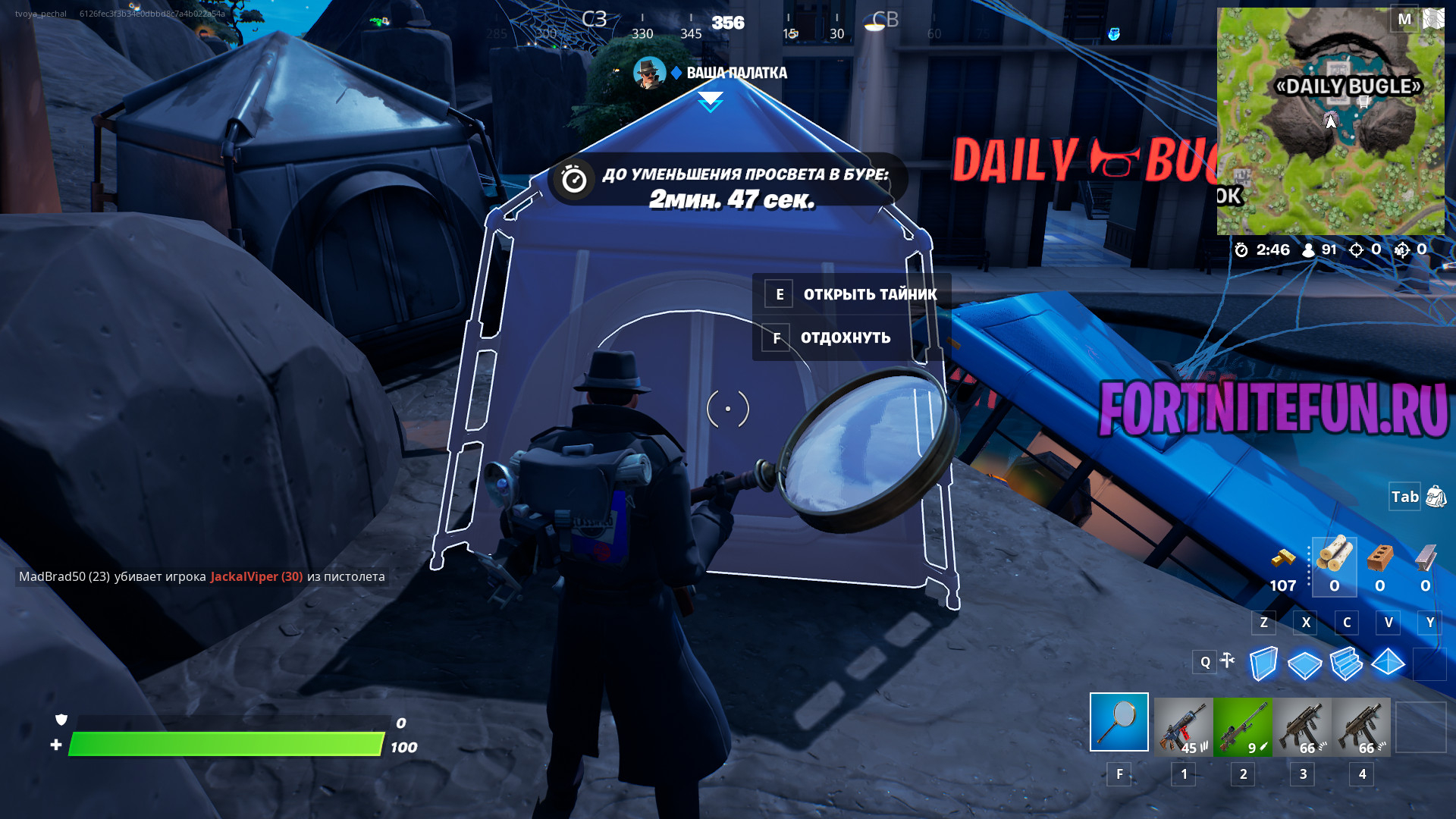 Прилетайте в любое место на карте (или ищите предмет «палатка»), принимайте ее в собственность и нажимайте «отдохнуть» перед ее открытием.