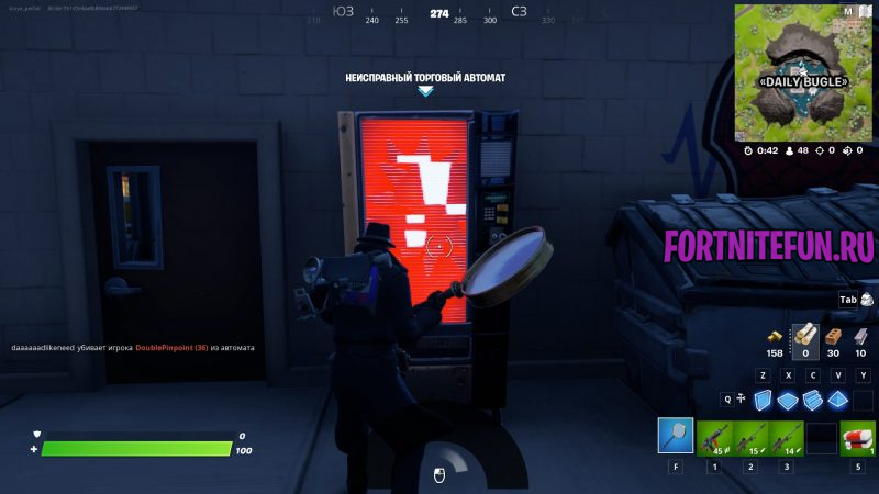 И неисправные торговые автоматы — это автоматы с оружием или хилками, что случайным образом вышли из строя. Ключевое слово здесь — случайно. Да, мест с их 100% появлением на карте нет, а потому единственный способ прохождения — это путешествовать по разным точкам спавна торговых автоматов и искать сломанный (мне 2 раза (из 3 падений в одну точку) неисправный автомат попался на локации Daily Bugle).
