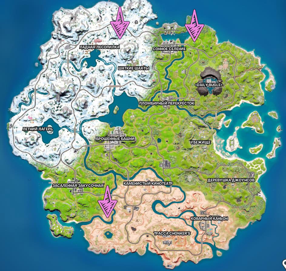 На территории фортнайта находится небольшое количество развалин, храмов, а иногда и больших храмов. Вам нужно прилететь в одну из таких точек и собрать камень. На карте вы можете видеть точки, в которых находятся подобные локации.