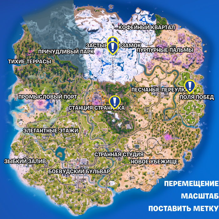 На этой неделе от нас требуют победы над Владыкой льда. Найти его можно на следующих отметках на карте. Босс непростой, но и не самый сложный, здесь стоит учитывать, что от размера команды зависит и сложность босса.