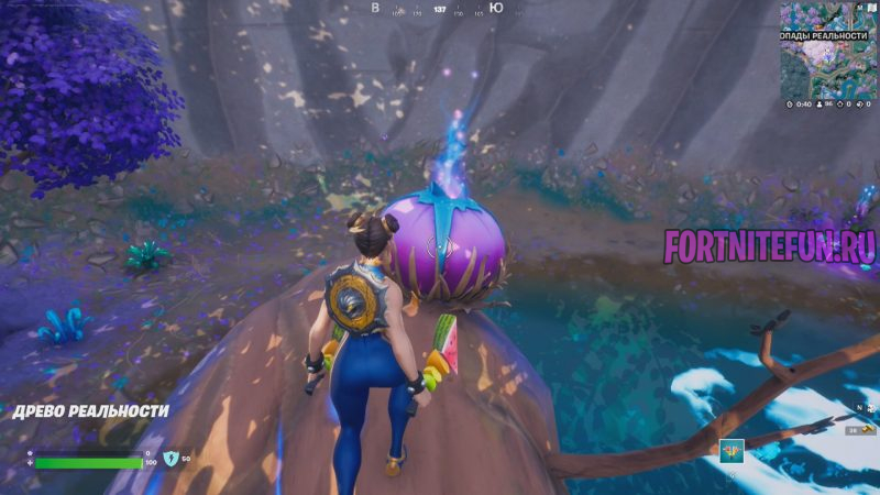 Есть два пути прохождения данного испытания. Первый способ — вы можете прилететь на локацию с большим деревом и найти там корягу со странным цветком.