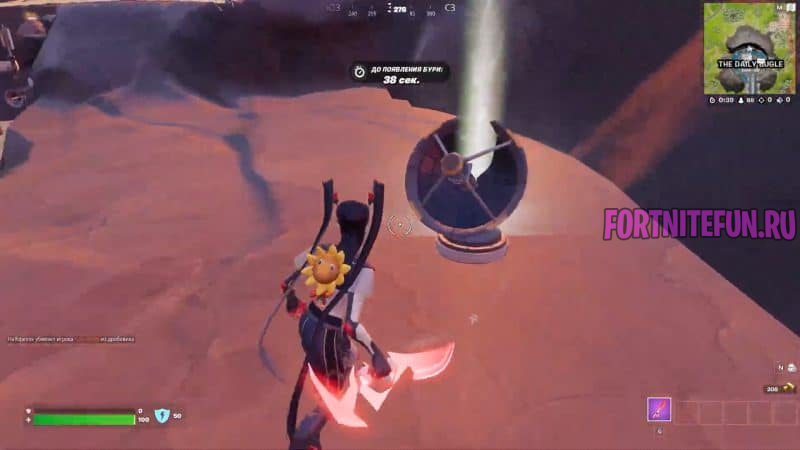 Прямо в основании вулкана, под паутиной, будет стоять спутниковая антенна. Разбейте ее киркой, и испытание завершится!