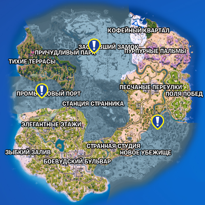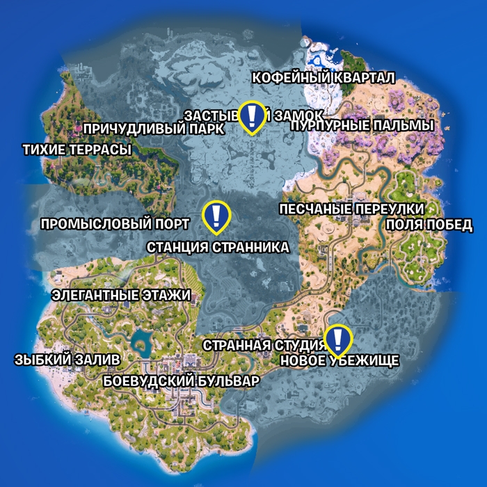 На карте отмечены 3 осколка Эпицентра, и каждый придется посетить. При контакте осколки телепортируют вас в небо, как обычный разлом.