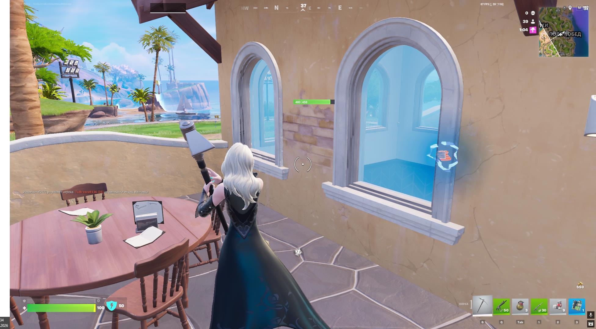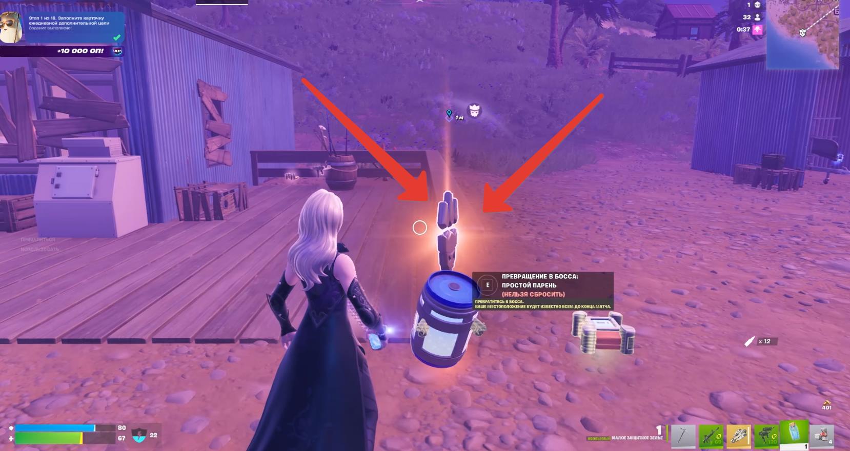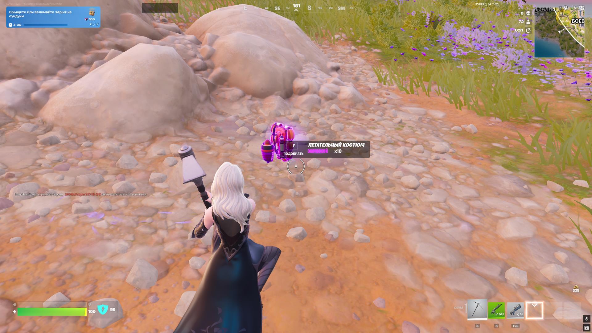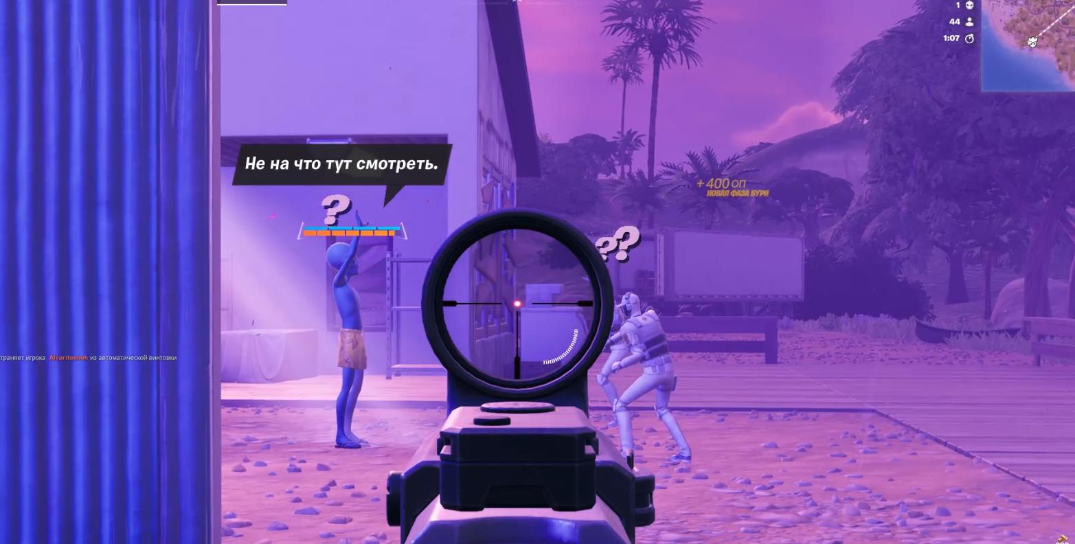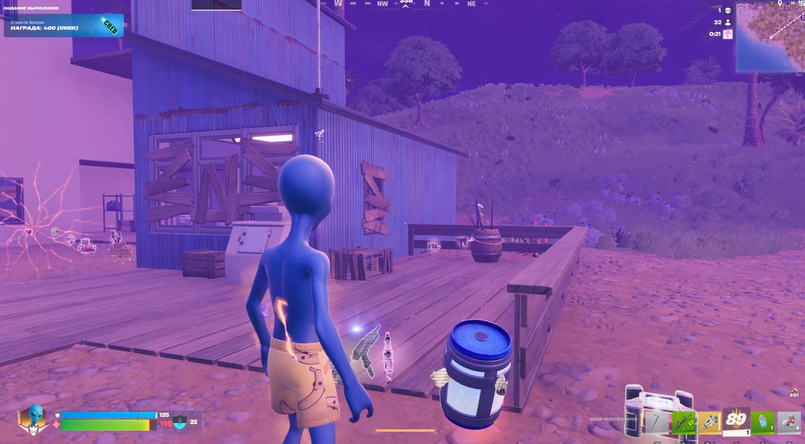 - Просто приземлитесь в локацию «Пурпурные пальмы» и собирайте любое оружие с земли и из сундуков.
